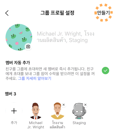 당신의 프로필 사진을 채팅 그룹에 표시하려면 Ligo 친구 추가를 클릭하세요.